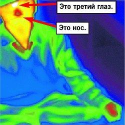 — На снимках хорошо видно, что небольшая область, расположенная между глаз, разогревается, — рассказывает один из создателей прибора, Михаил ЩЕРБАКОВ. — Прямо пылает, излучая энергию. И выглядит, как третий глаз.