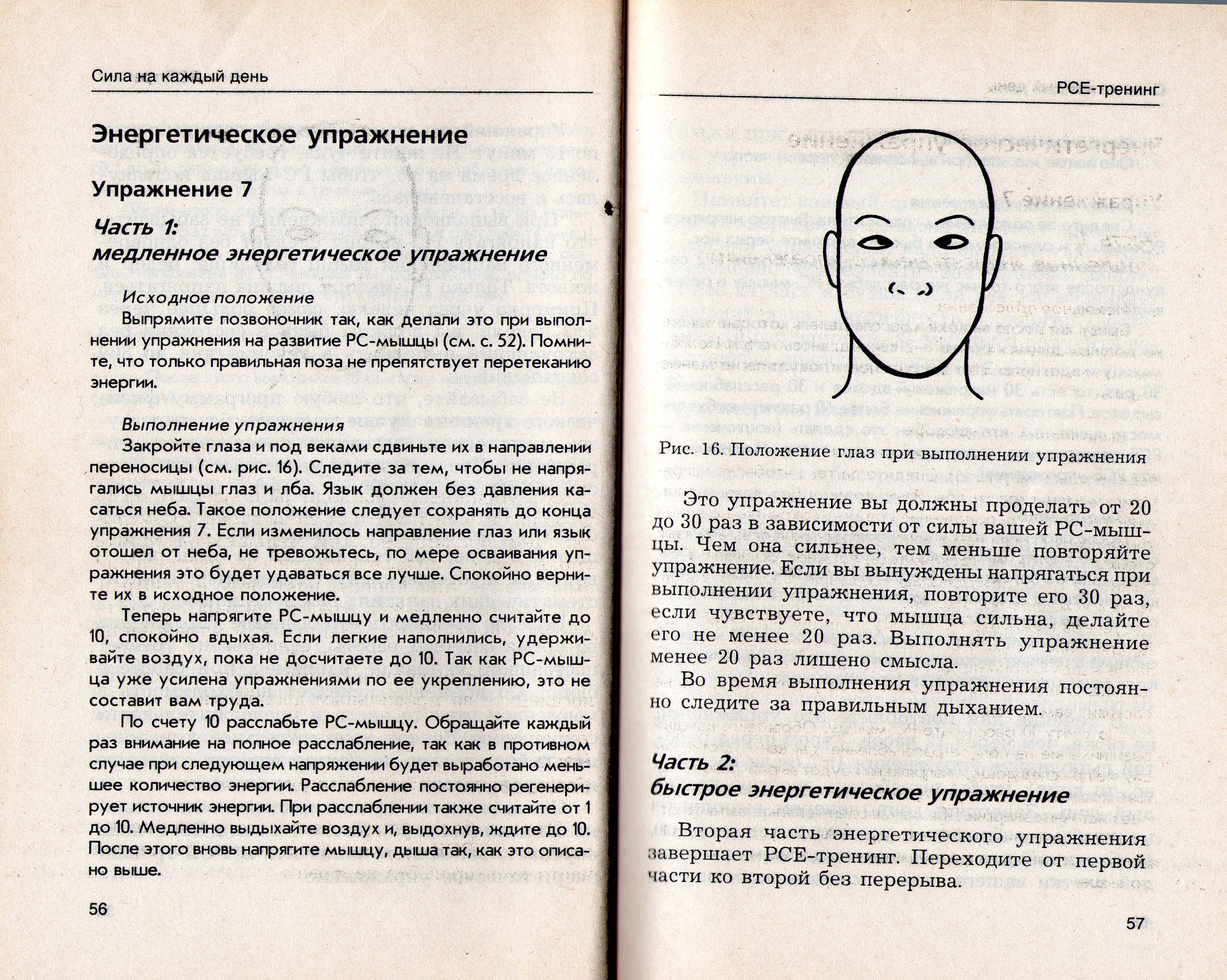 Программа РСЕ — тренинга нацелена на совершенствование ваших мыслительных способностей, памяти, она развивает интуицию, повышает ваши результаты, положительно действует на коммуникационные способности. Не в последнюю очередь упражнения способствуют восстановлению организма и усиливают способность к самоисцелению. Эффект омолаживания удваивается при регулярном выполнении упражнений в том порядке, который указан ниже.
