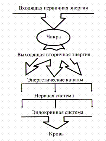 Чакры отбирают необходимое количество энергии из потоков идущих через наше тело, восходящий и нисходящий потоки энергии. Далее, чакры преобразуют полевую (первичную) энергию во вторичную или «проводную», и она распространяется по каналам эфирного тела по всему физическому телу, ко всем органам. Вот так выглядит упрощённая схема питания человека праной – энергией, или в контексте этой статьи так организована связь с богом.