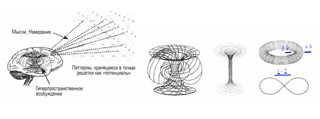 Мозг человека является источником магнитных полей, имеющих также форму тора с вихревой воронкой. Тор является межпространственным вихрем (воронкой). Поперечное сечение тора, представляет собой петлю в виде восьмерки – это универсальная характеристика магнетизма. Символично, что ДНК также имеет вид петли.