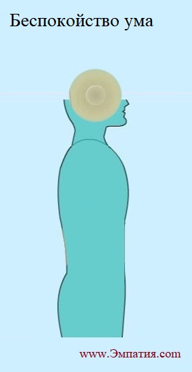 евога, рождённая в уме, в виде страхов личности, локализована только в районе головы, в ментальном поле. Она возникает, когда наш ум в беспокойстве из-за переживаний опасности, наличие которой мы предполагаем, но совершенно не факт, что она есть на самом деле. То есть по сути – это эмоциональная реакция на фантазии, догадки, предположения личности — ума.
